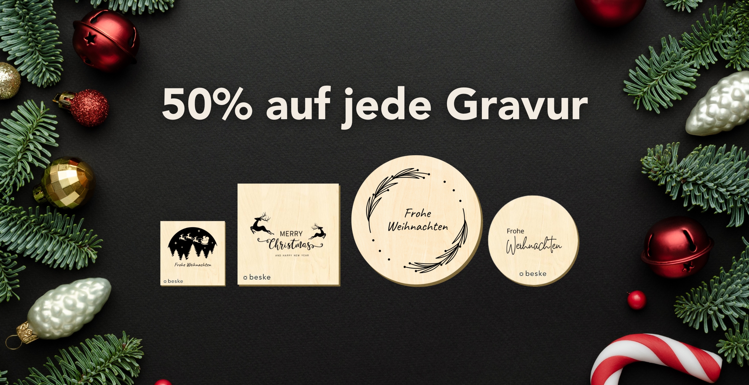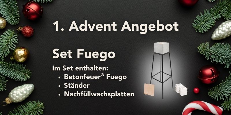 An jedem Adventswochenende stellen wir ein besonderes Produkt in den Mittelpunkt. Doch nicht nur dann lohnt sich ein Blick: Während der gesamten Weihnachtszeit bieten wir ausgewählte Highlights an – und machen Individualität ganz einfach. Sichere Dir Dein Betonfeuer mit einer personalisierbaren Botschaft und 50 % Rabatt auf die Gravur.