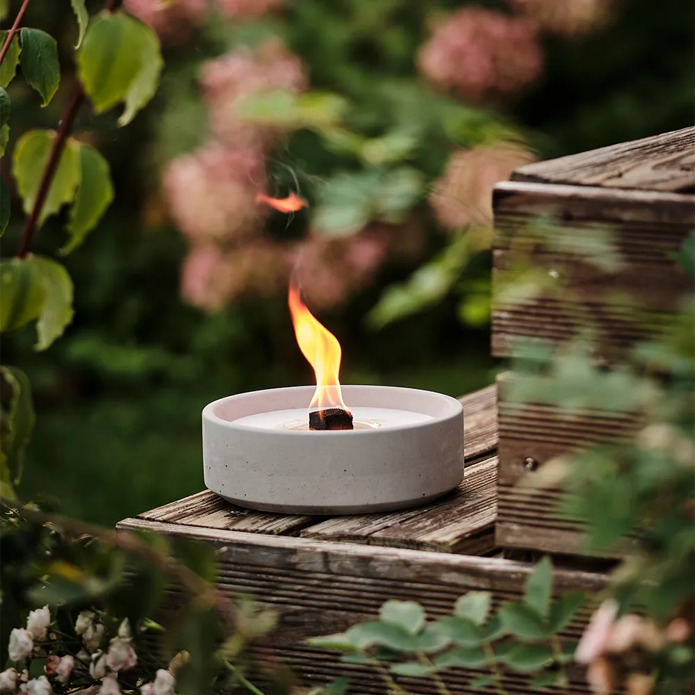 Mit ihrer größeren Flamme und verlängerten Brenndauer gehört „Suma L“ zu unseren kraftvollsten Alleskönnern. Ideal für großzügige Terrassen, die Gartenlounge oder den Poolbereich – ‚Suma L‘ sorgt für Atmosphäre mit Präsenz. Die Größe des Betonfeuers und der Flamme setzen ein Feuerstatement in Deinem Zuhause!