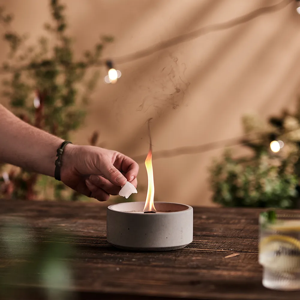 Aufgrund der Flamme und Brenndauer gehört ‚Suma M‘ zu unseren Alleskönnern. Egal, ob für den Esstisch auf der Terrasse, die Gartenlounge oder einen großartigen Stadtbalkon – Suma ist Dein Favorit, wenn Du runde Formen bevorzugst!