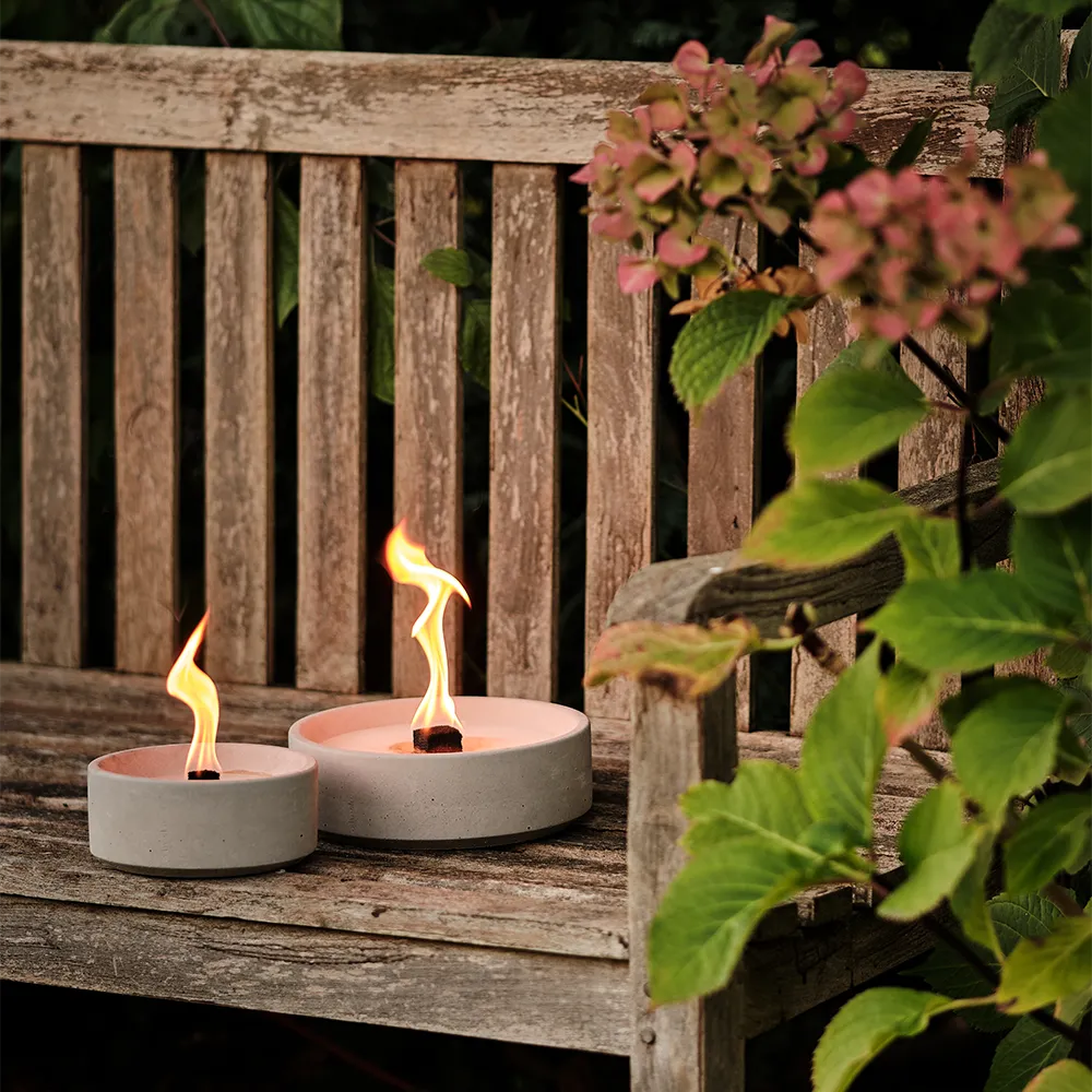 Neue Formsprache – neues Glück! Die Kollektion der vier neuen Betonfeuer ist filigraner, flacher und trotz allem Teil der Familie der Betonfeuer. Egal ob rund oder rechteckig – die Wachsfresser aus feinporigem Beton verwerten Deine Kerzenreste und verwandelt Wachsreste in schöne Stunden. Dank Dauerdocht kannst Du ‚Suma‘ und ‚Meru‘ in beiden Größen langfristig auf Deiner Terrasse genießen.